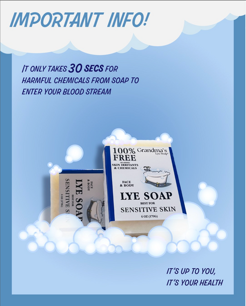 Your skin is your body’s largest organ—and it absorbs what you put on it in just seconds. That’s why checking the ingredient list on your soaps and lotions is so important. Many commercial products are packed with harsh chemicals, dyes, and synthetic fragrances that can irritate your skin or even enter your bloodstream. Grandma’s Lye Soap takes a different approach: each bar is made with only a few, minimal ingredients—all natural, all purposeful, and nothing extra. It’s clean, simple, and safe care you can trust for yourself and your family.